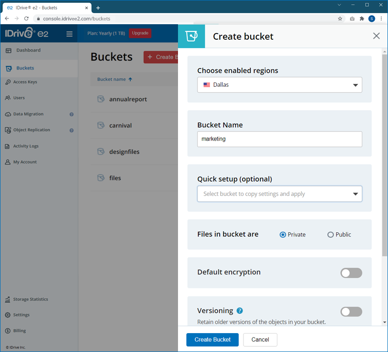 - Sign in to the IDrive® e2 account.