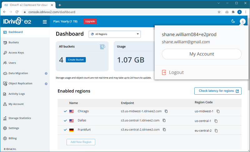 - Sign in to IDrive® e2 account via any browser.