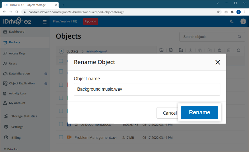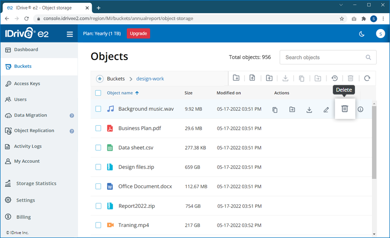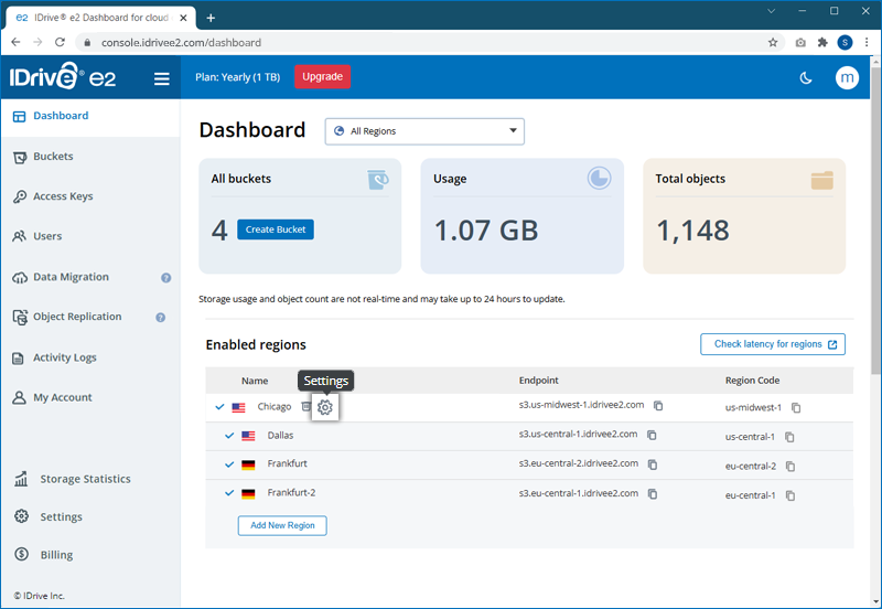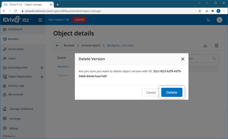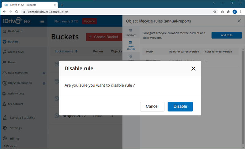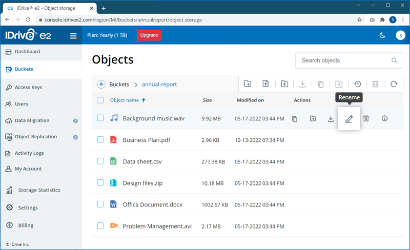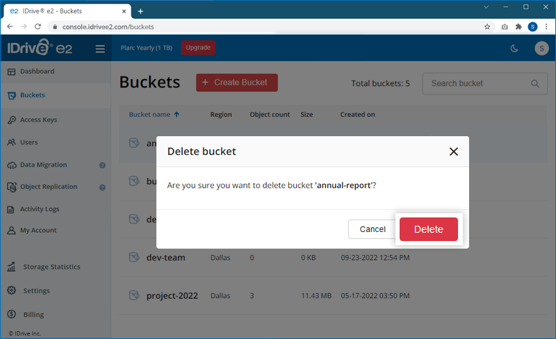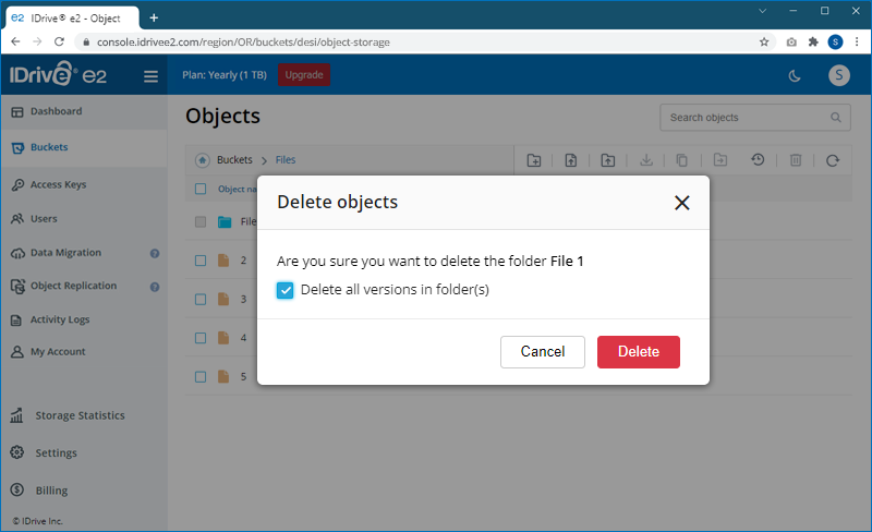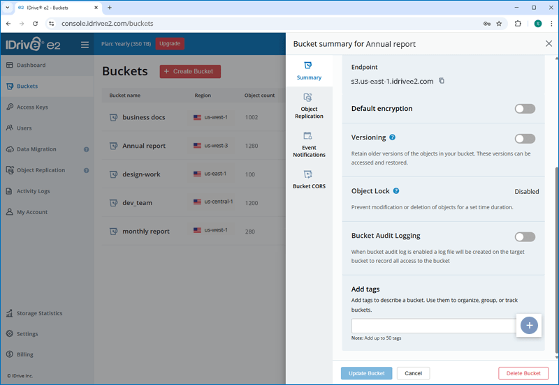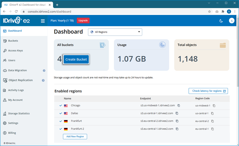 Note: IDrive® e2 does not limit bucket size or the number of objects you can upload to a bucket.