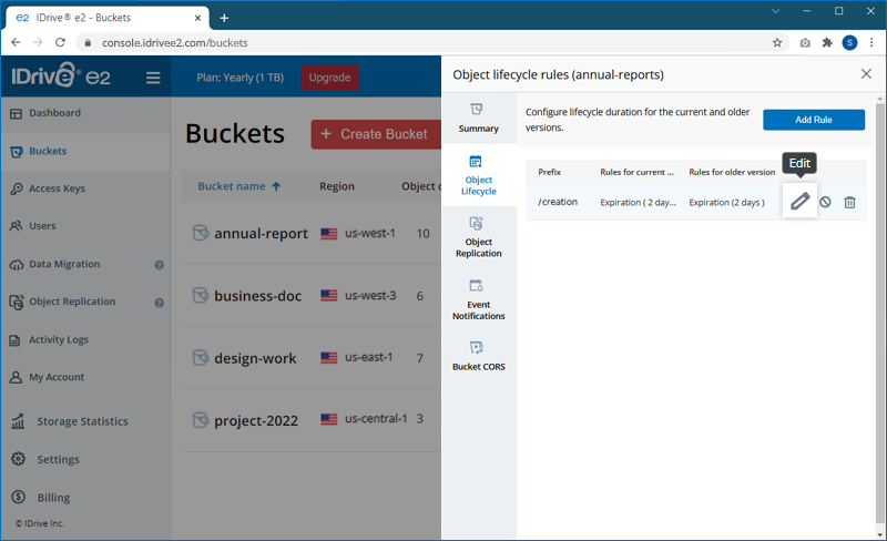To edit the object lifecycle rule, click