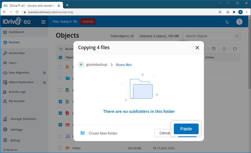 Note: IDrive® e2 does not support copying the entire folder.