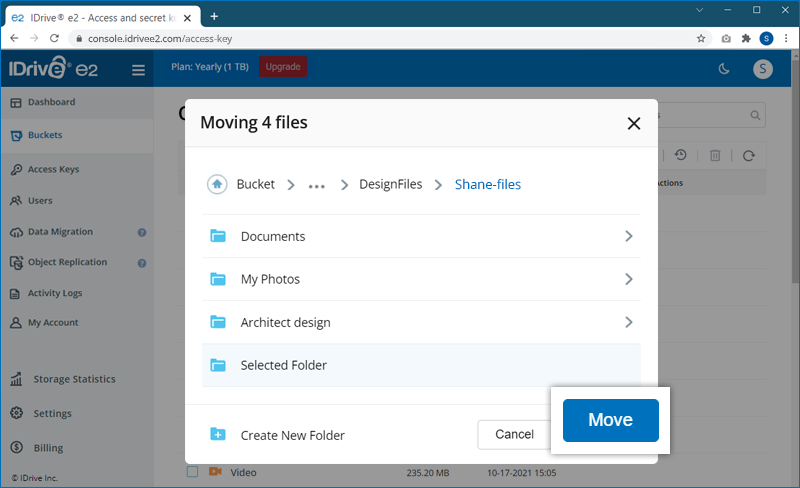 Note: IDrive® e2 does not support moving the entire folder.